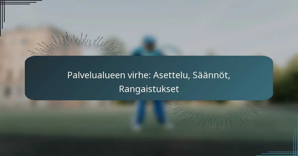 Palvelualueen virheet tapahtuvat, kun pelaaja ei noudata vakiintuneita ohjeita syöttämisessä tenniksessä. Nämä virheet voivat johtaa rangaistuksiin, jotka vaikuttavat ottelun lopputulokseen, joten on tärkeää, että pelaajat ymmärtävät palvelualueen sijoittamista ja rikkomuksia koskevat säännöt.